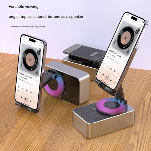 3-in-1 Portable Desktop Speaker: Bluetooth, Rotatable & Foldable Phone Stand, and Colorful LED Lights — A Multifunctional Audio Device